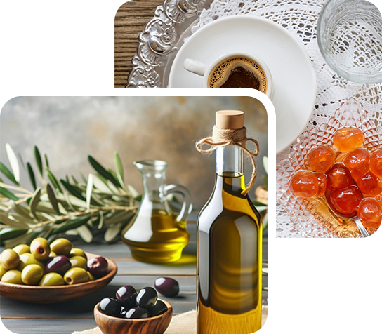 The panorama of Greek flavors is completed by other small treasures such as traditional pasta, honey, aromatic herbs, rusks, marmalades, cheeses, grape molasses, spoon sweets, and more. |